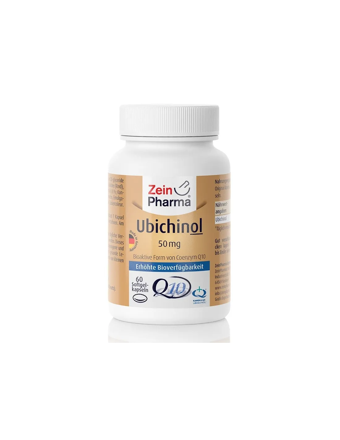 Le capsule Zein Pharma Ubiquinol sono formulate con Ubiquinol, la forma bioattiva del coenzima Q10. Questa forma è progettata per essere facilmente assorbita e utilizzata dall'organismo. Le capsule sono prodotte con Ubiquinolo originale Kaneka, che ne garantisce l'alta qualità e la purezza. Kaneka è un'azienda rinomata per la sua esperienza nella produzione di Q10.